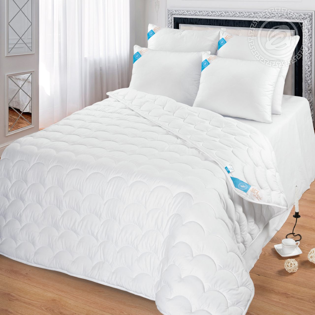 Состав: Наполнитель: Сверхтонкое полиэфирное силиконизированое микроволокно "Лебяжий пух". Плотность: 350 гр/м2. Чехол: Стеганый с окаймляющей лентой - микрофибра гладкокрашенная с тиснением.