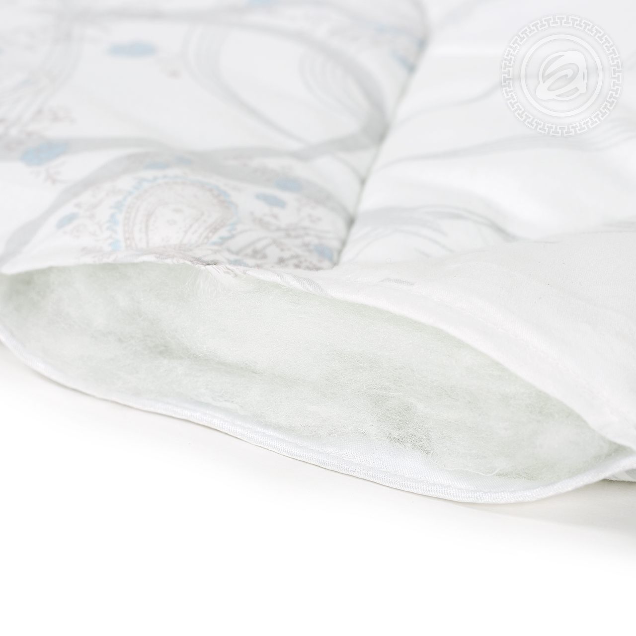 Состав: Наполнитель: Сверхтонкое полиэфирное силиконизированое микроволокно "Лебяжий пух". Плотность: 350 гр/м2. Чехол: Чехол с кантом, декоративная отстрочка - 100% хлопчатобумажная ткань с ворсом.